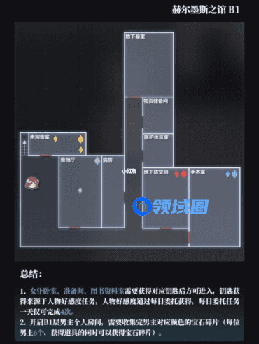 我先选的夏彦,黄色宝石集齐,就可以进B1未知密室了~其他房间需要集齐的对应颜色宝石见图~所以先探索1-3层,再来B1层比较好~