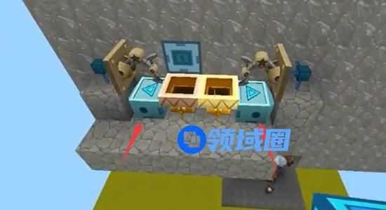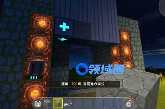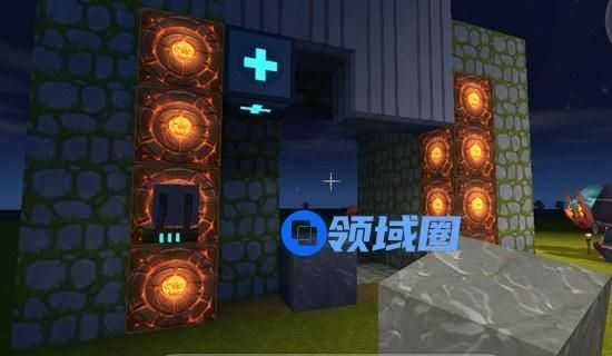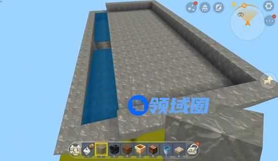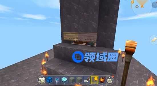这里需要特别注意的是搭建方块要选岩石。因为我们之后会用到滑动方块,如果用岩石块会因为滑动方块无法移动而导致无法工作。我们用滑动自动门就可以理解这个原理,滑动方块可以带的起岩石块,但对岩石没有影响。