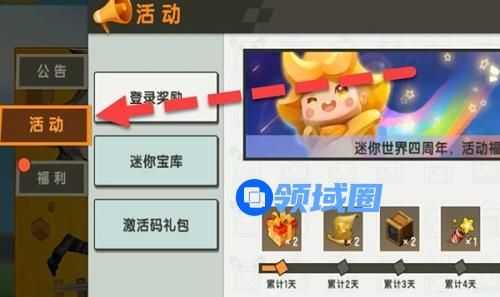 2、然后进入活动界面,点击左边的活动按钮;