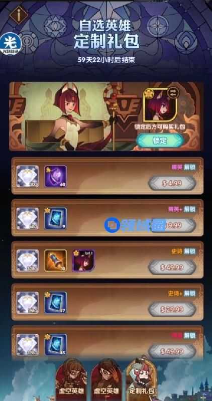3.玩家锁定选择的英雄后,将无法再更换自选英雄,同时根据玩家锁定英雄的品阶一次性解锁部分礼包。