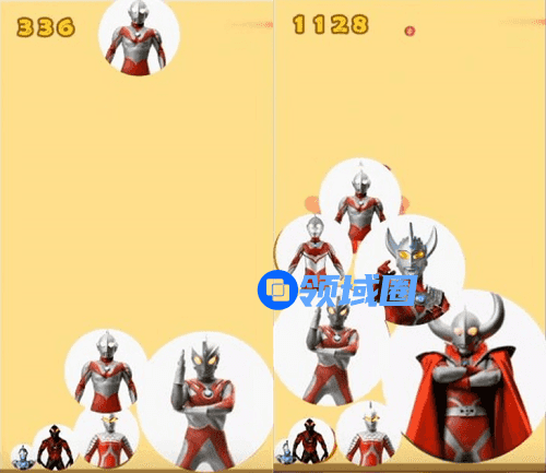 2.一开始玩建议大家有序的排列奥特曼,遵从一个角落奥特曼最大,越往外奥特曼越小的感觉(类似2048),这样容易产生连续合成而节约空间。而且一旦大奥特曼在中间很容易堆太高导致游戏失败。