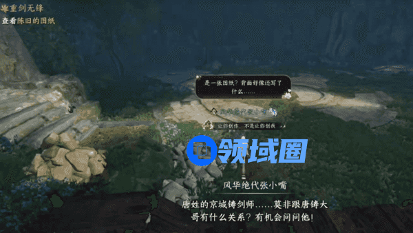 3、之后在(129,136)的位置,可以找到陈旧图纸,点击查看陈旧图纸,即可完成奇遇。