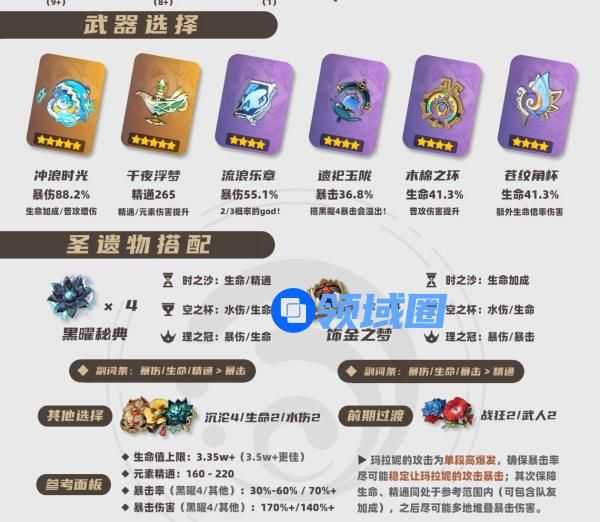 武器推荐:冲浪时光、千夜浮梦、遗祀玉珑、流浪乐章、木棉之环、苍纹角杯。
