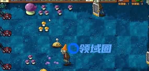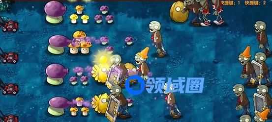 1、第八关是在夜间模式,首先在第二列先种植上大喷菇以及三个。