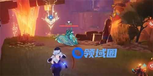 7、来到最后的小缝影针处进入霞谷底部调查并击败兽境猎犬。