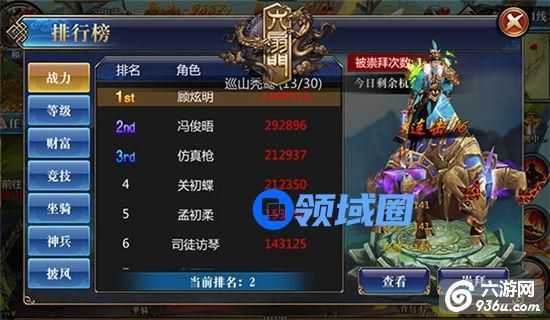 上榜不易需努力,崇拜大有搞头要知道,为了彰显大侠们的各种实力,《六扇门》手游的排行榜也是添加了各类榜单,什么战力榜、财富榜、等级榜、神兵榜、坐骑榜等等。总之,多样性的榜单也为大侠创造了更多的机会,找到自己擅长的一个方面,跻身排行榜也并不是什么遥不可及的事儿。