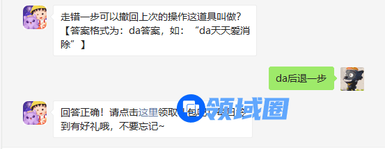 走错一步可以撤回上次的操作这道具叫做?【答案格式为:da答案,如:“da天天爱消除”】这是天天爱消除3月22日每日一题,游戏宝小编为您带来走错一步可以撤回上次的操作这道具叫做答案分享。
