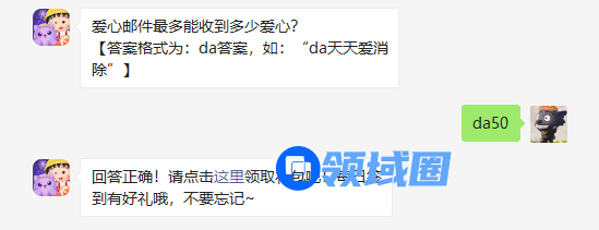爱心邮件最多能收到多少爱心?【答案格式为:da答案,如:“da天天爱消除”】这是天天爱消除3月20日每日一题,游戏宝小编为您带来爱心邮件最多能收到多少爱心答案分享。