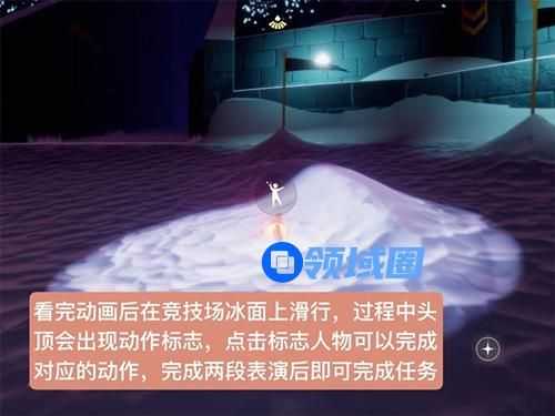 6、看完动画后来到熘冰场和小女孩一起滑行,点击头顶的动作标志,表演完后即可完成梦想季最后一个任务。