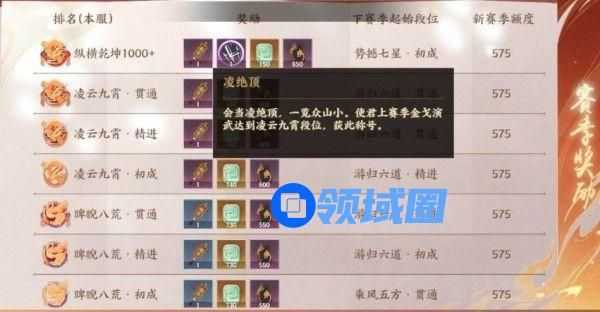 包含段位(从高到低排序):纵横乾坤、凌云九霄、睥睨八方、势撼七星、游归六道、乘风五方、踏歌四海、声闻三界、通晓两仪、一梦忘川。