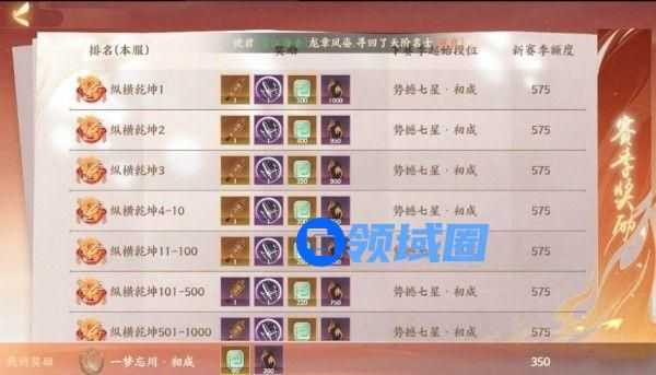 纵横乾坤(排名1-100):称号·万人敌、徽章·金戈铁马、数量不等的通宝、数量不等的枕戈符;