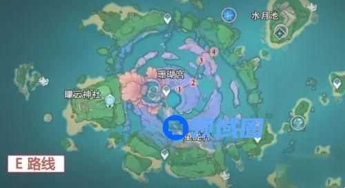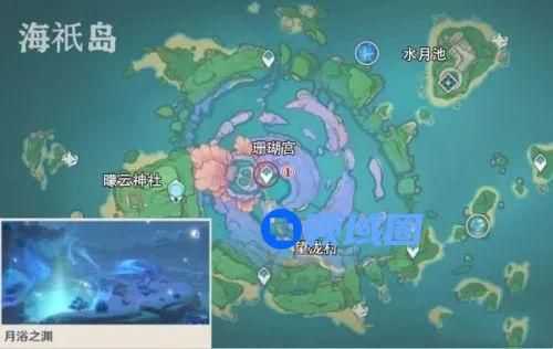 从珊瑚宫「传送点」跳下山崖下的大水池,大水池叫月浴之渊。