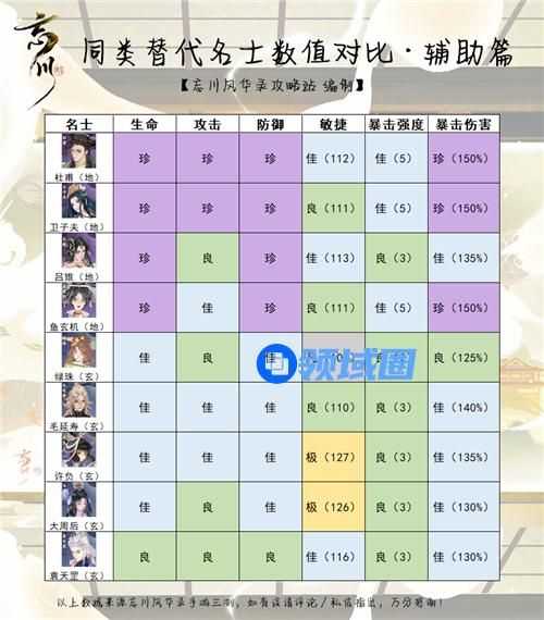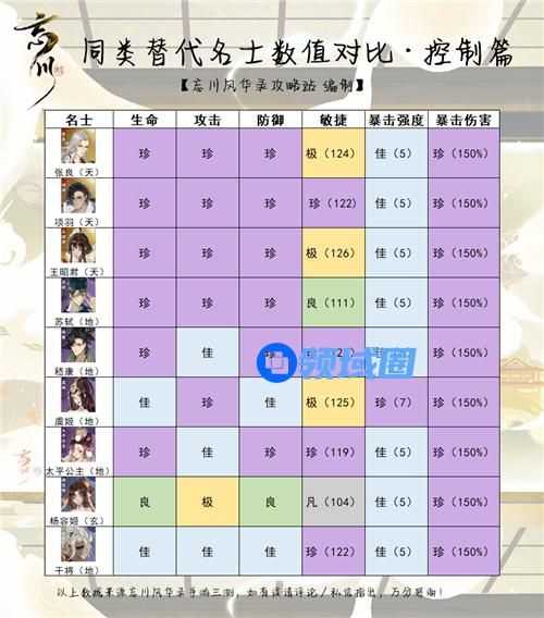 总而言之,单纯强度划分可能比较片面,因此这里将所有名士的属性特点给列举出来,方便各位根据属性需求进行培养。只能说天品角色,大部分都比地品更值得培养。
