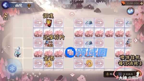 战斗没有什么难度,随便抓个前面的阵容挂机即可;体服体感御魂收益比较低,推荐选择达摩或者金币。