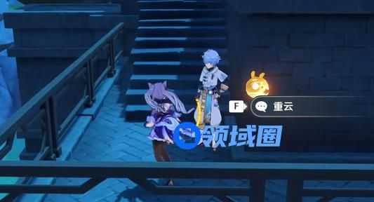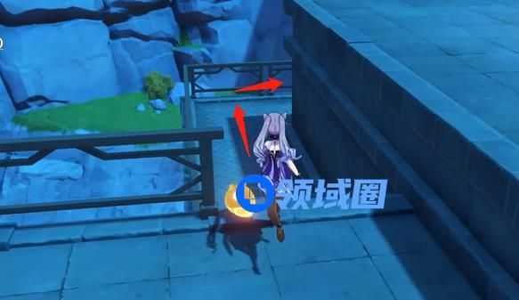 2、在桥拐角的墙前,我们就能看到躲在这里的重云。