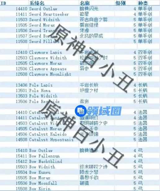 这张是武器的拆包表,里面有不少新名字,其中不知道有木有废案,所以大家看看就好