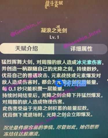 勐烈挥舞大剑,对周围的敌人造成冰元素伤害,并创造一柄跟随自己的光降之剑,持续数秒。