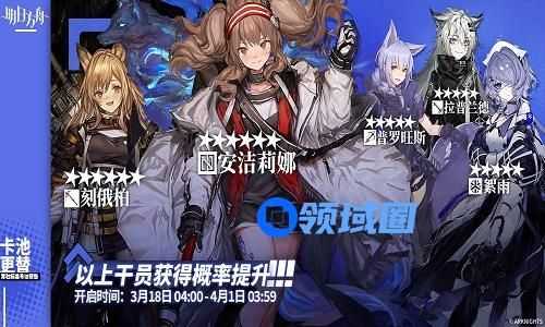 起止时间:03月18日04:00 ~ 04月01日03:59寻访说明:常驻标准寻访更新,该寻访中以下干员获得概率提升;