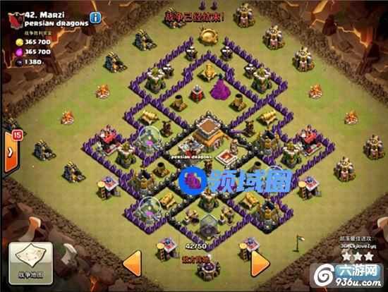 同时12点对准防空下成点下野猪,配合治疗可强拆防空连同吹风机以及一个法师塔和箭塔,真是物超所值,然后闪震破3点防空,9点下龙平推,稳稳的三星(没错其实就是小编打的)。