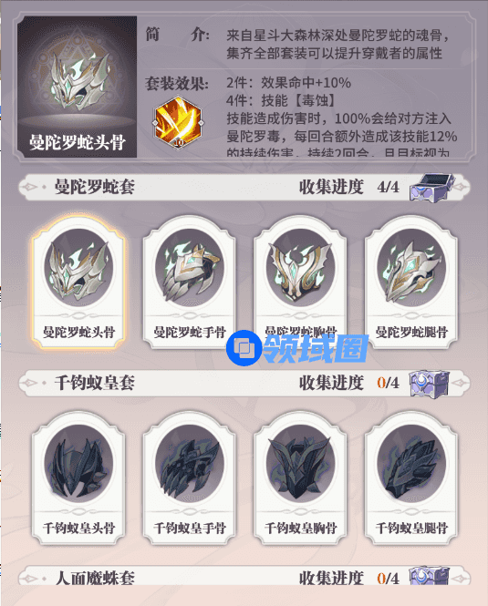 2件可激活魂骨专属的属性,4件可激活魂骨专属的技能。