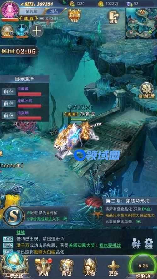 第二点就是武魂魂环技能的搭配,在海神九考玩法中,玩家每次通关考试之后都会获得魂力恢复速度的增加。而魂力是释放技能的一个重要消耗,所以玩家在挑战海神九考的时候可以搭配大量的主动输出技能,当然了一些被动的加成技能也是需要选择的。这样搭配的好处就是频繁的使用技能,然后在规定的时间内可以解决掉精英怪完成通关。