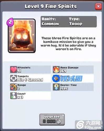 我们先分析分析优点:a、费用只需要2费,可以作为过牌;b、2费能召唤3个单位造成3*140的aoe伤害,可以在亡灵大军刚下来的时候解得只剩2个残血亡灵,能在塔前炸残4个野蛮人,但是比较吃对面阵型;c、超快的移动速度。自爆伤害还是不错的,还可以帮肉解决小部队的威胁。