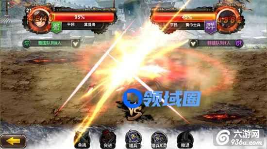 突破:当己方数量足够多时,可以突破敌军防线、直接进攻下一作城池。突破后玩家可攻打次城池相邻的敌方任意城池。