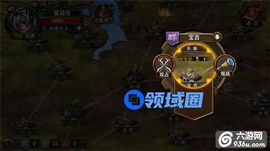 点击一座城池来打开该城的操作面板,如下图所示,吴国的建昌正处于交战状态,有6支魏国部队正在攻城,而城内只有4支魏国守军驻防。当玩家所在的城池与合肥西之间存在贯通的路径时,才可以加入到战斗中。吴国玩家可以点击“驻防”来增加防守力量;而魏国玩家则需要点击“攻占”来参与到进攻队列,协助夺下城池;蜀国玩家,也可以点击“攻占”来攻打城池。如果魏国防守成功,城池仍归魏国,否则城池归给城池最后一击的玩家所属国家。只有战斗中的城池才能观战,平时无法查看驻防情况。