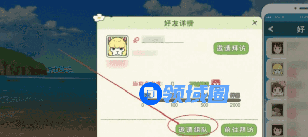 2、在好友界面可以看到自己的好友列表,选择一个想要组队的好友,点击对方的头像,会弹出好友详情界面,在好友详情界面可以看到【邀请组队】的按钮,点击这个按钮就可以邀请对方一起组队了,是不是非常的简单呢~