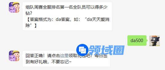 组队周赛全服排名第一名全队员可以得多少钻?【答案格式为:da答案,如:“da天天爱消除”】这是天天爱消除3月12日每日一题,游戏宝小编为您带来组队周赛全服排名第一名全队员可以得多少钻答案。