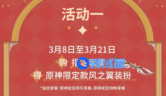 3月8日到3月21日,购指定套餐得原神限定款风之翼装扮,记住是这个时间段哦。