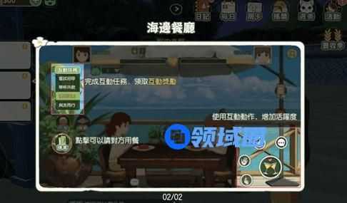 想要在海滨餐厅进行用餐,就需要找到海滨npc晴奈,在晴奈处可以选择拼桌用餐或者包厢用餐,拼桌用餐是随机找到其他玩家一起用餐,包厢用餐则可以邀请指定好友玩家一同用餐。