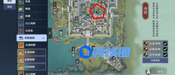 3、寻得一条金鳞锦鲤,位置如下