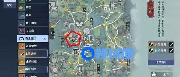 寻得一条沧澜锦鲤,位置如下