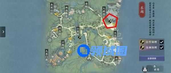寻得一条白雪锦鲤,位置如下