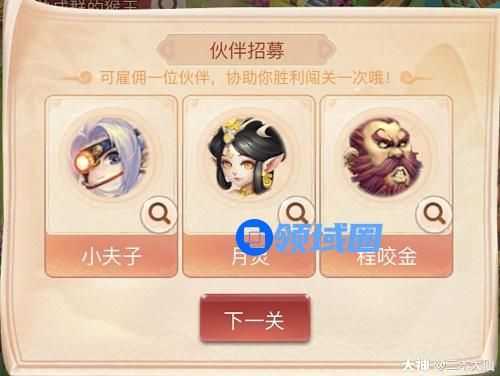 这关对于金伙伴不是很齐全的玩家(特指战力较低伙伴较少的玩家)来说,比较重要,建议没有小夫子的换小夫子,有小夫子的换程咬金。