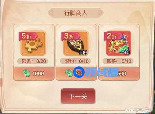 第二关:行脚商人;此关卡购买神兜兜即可(或者不购买任何材料)。