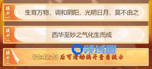终于看到了心心念念的线索。关于这位神秘伙伴的第一条线索:生育万物,调和阴阳,光明日月,莫不由之。这一条和骨妹心中的人选相符,但这条线索说的比较模煳,没有很确切的关键字眼,骨妹也只敢肯定个五六十。接下来公布的第二条线索终于让骨妹确定了答案。