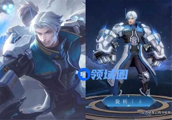 结合达摩英雄“大拳套”的武器特点与星际陆战队的故事背景进行创作,并提取了相关元素,白金蓝的整体配色更显星际与秩序感,金色的胸章也暗示了皮肤星际陆战队首领的身份。