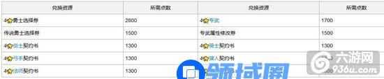 目前版本(2.2)中,可兑换的资源及对应点数如下: