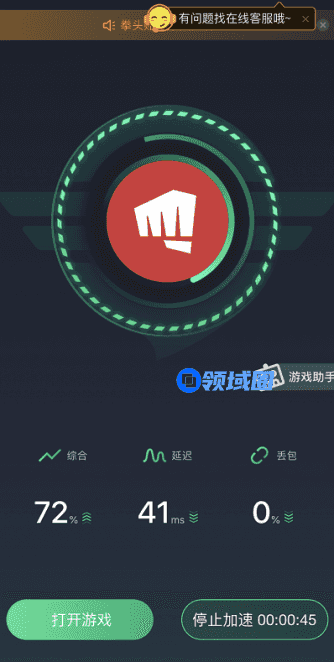 3,选择地区之后会进入加速页面,加速成功之后点击按钮,进入LOL英雄联盟手游账号中文注册页面。