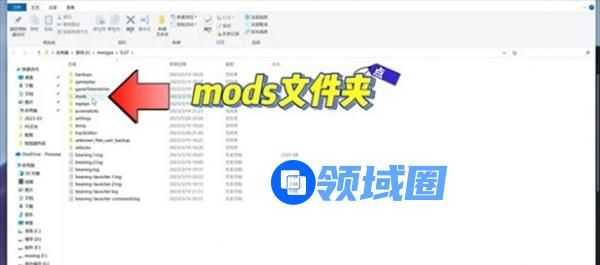 2、点击“在资源管理器中打开”按钮,进入MODS文件夹,筛选并打开下载的模组。