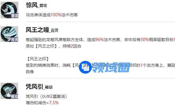 风王之瞳:是一个范围性攻击的技能,不可有伤害还能附加风王之印效果。