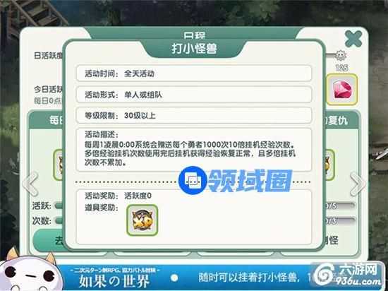小编最后一个要介绍的技能是乱入挑战者!可以说在《如果的世界》中这是一个非常有难度的挑战哟~~~需要米娜桑配合默契并且职业齐全,不过任务完成 后得到的奖励可真是很稀有呢,除了大量的经验外,勇士们还可以得到祝福外套、20级武器图纸以及召唤并进化珍稀灵兽的的白色原石哦!想得到珍惜灵兽的小伙伴们还在等什么呢,蓝龙和小玉在向你们招手哟!