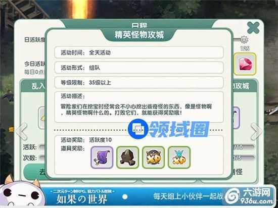 怪物攻城玩法也是《如果的世界》中比较有难度的玩法,分为普通怪物攻城和精英怪物攻城,勇士们需要将挖宝挖出的精神错乱怪物杀死,打败它们,就能获 得奖励哟!当然,挑战不同的怪物奖励也是不同的哦,杀死普通怪物的勇士会得到大量的经验、金币和打造装备的低级矿石,而打败精英怪物的勇士则会得到大量的经验、金币和20级武器图纸哟!