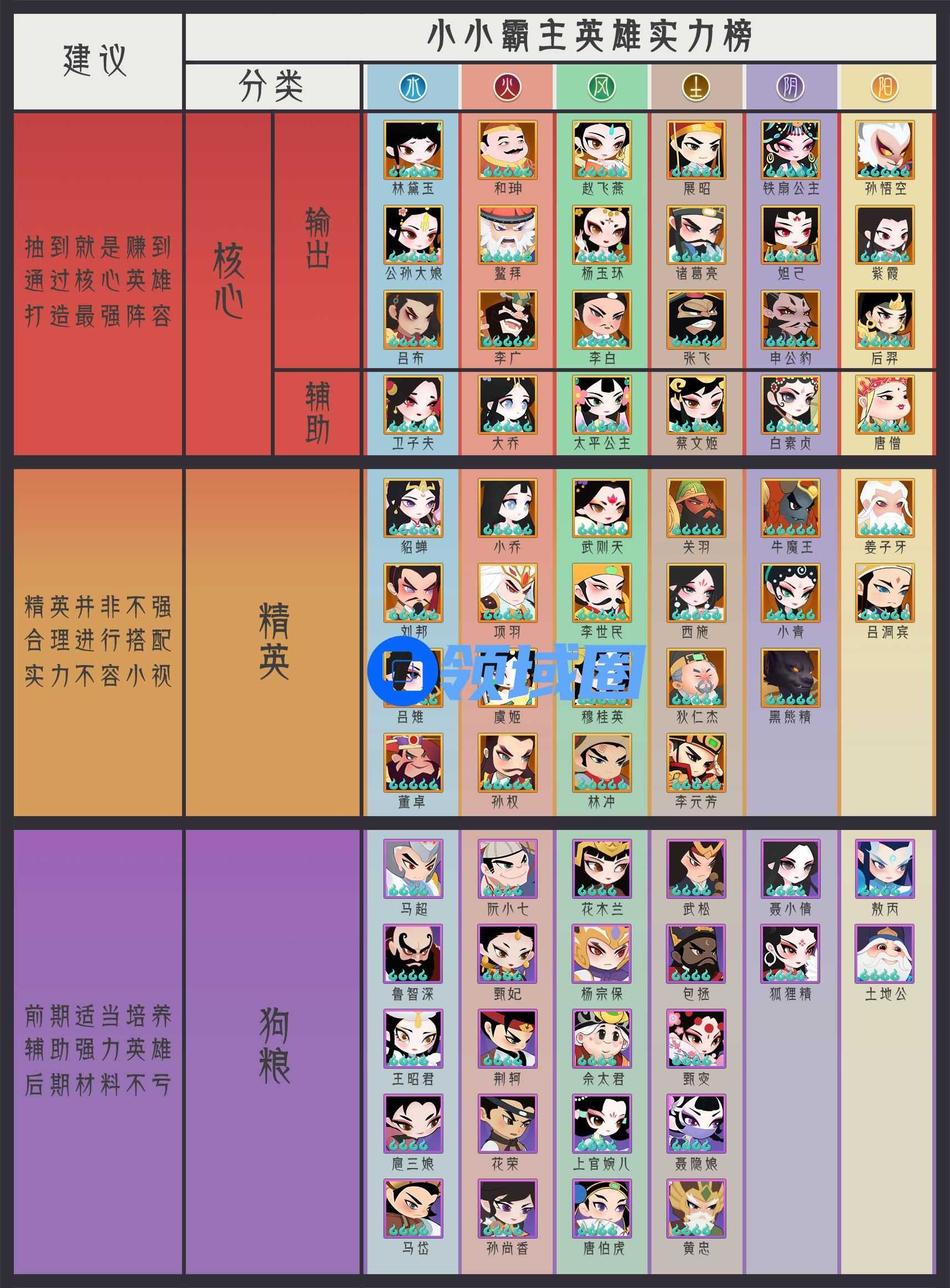 小小霸主英雄排行榜能直观的反映出当前英雄的强度差异,对于玩家选定英雄重点培养非常有帮助,游戏宝小编为您带来小小霸主英雄排行榜,让大家有一个清楚的了解。