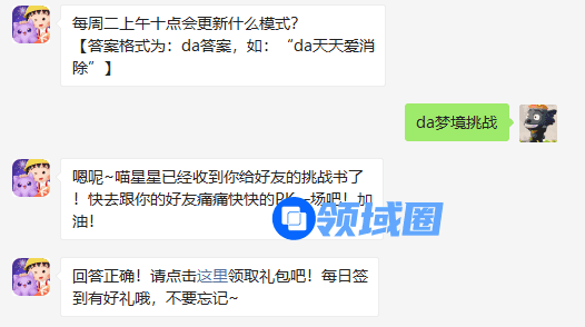 每周二上午十点会更新什么模式?【答案格式为:da答案,如:“da天天爱消除”】这是天天爱消除3月29日每日一题题目,游戏宝小编为您带来每周二上午十点会更新什么模式答案分享。