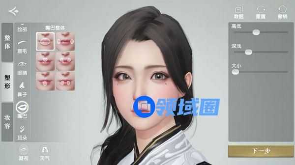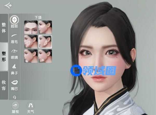可以看到,在【塑形】界面,从脸部到五官,都可供自由调节。独特细致的捏脸系统,如果能够熟练上手的话,可以最大化地打造出你心中最美的样子哟!