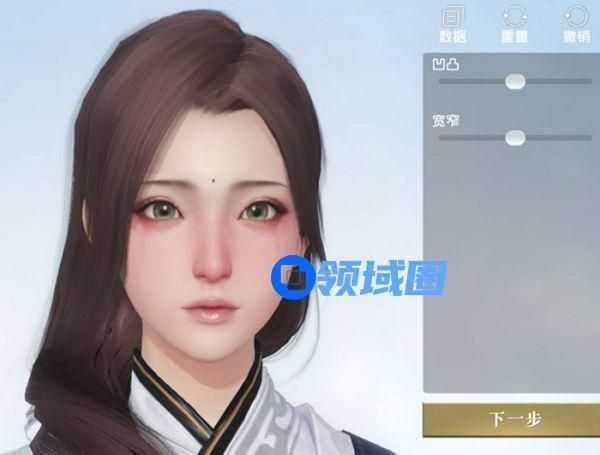 比如,【脸部】界面就有6个不同的细节可调节,包括额头、眼下、脸颊、下颌、下巴、下脸颊。打造本期主题中的清纯无辜脸,我们就需要将脸型调整得更加短和圆。