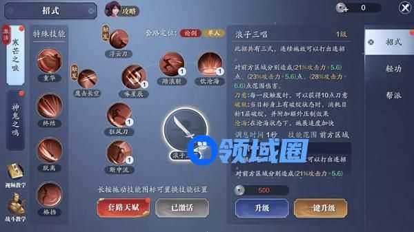 “笑红尘”和“惊涛斩”在命中敌人后,会使敌人露出破绽,此时使用“浪子三唱”和“鹰击长空”攻击敌人会回复自身气血,若是霸体目标露出破绽,则会受到更高的技能伤害。